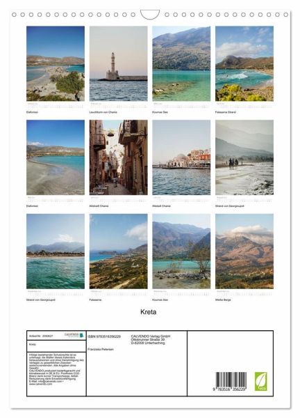 Ein Kalender mit Fotografien der wunderschönen griechischen Insel Kreta. Strände, Seen, Gebirge und charmante Altstädte. Vielseitige und traumhaftschöne Landschaften.