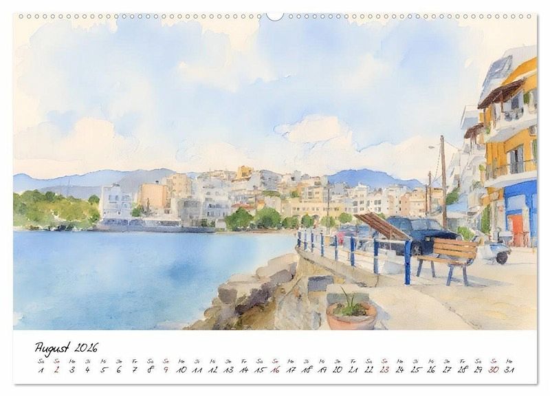 Auf Kreta, der größten griechischen Insel, gibt es viele zauberhafte kleinere Orte mit Tradition und Charme. Verwinkelte Gassen, atemberaubende Blicke auf's Meer oder auf die Berge verzaubern jeden Besucher. Dazu kommt die warmherzige und gastfreundliche Art der Kreter, die stolz auf ihre Heimat sind. Traditionelle Küche rundet das Gesamtbild ab. Ohne Hektik bieten diese Ortschaften Raum zum Relaxen und Genießen. Die wunderschönen Bilder im zarten Aquarellstil entstanden durch moderne Bildbearbeitung aus meinen eigenen Fotos.