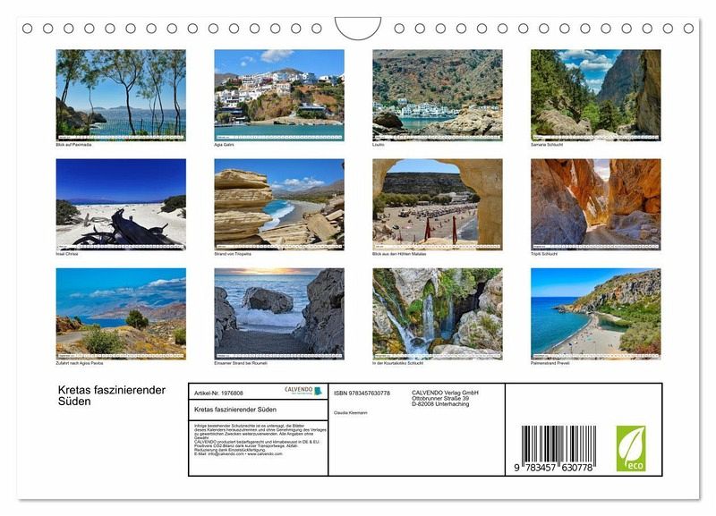 QUALITÄT - Hochwertiger Fotokalender mit 12 wunderschönen Motiven auf lichtbeständigem Bilderdruckpapier, robuste Spiralbindung mit Aufhängebügel.NACHHALTIG - deutliche Abfallreduzierung durch bedarfsgerechte Einzelstückfertigung, umweltfreundliches FSC-zertifiziertes Papier, Produktion in Deutschland, klimabewusste Logistik.PERFEKTES GESCHENK - Kalender für Freunde und Familie, für Kinder und Erwachsene, jung und alt, zu Weihnachten, Geburtstag oder zwischendurch.VIELFALT - Bildkalender in verschiedenen Formaten, z.B. DIN A5, DIN A4, DIN A3 sowie DIN A2. Ob Naturmotiv, Gemälde oder Fotos, ideal für ein persönliches Wohlfühlambiente.Erholsame Ruhe an Kretas Südküste von Autor(in): Claudia Kleemann