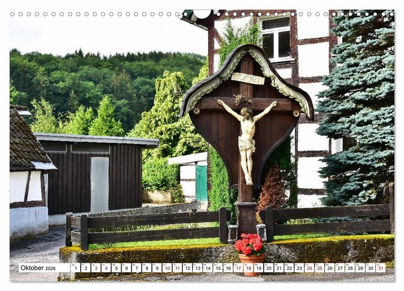 April: In Eicherscheid in der Gemeinde Simmerath sind Kreuze und Kruzifixe oft an Fachwerkhäusern zu finden.