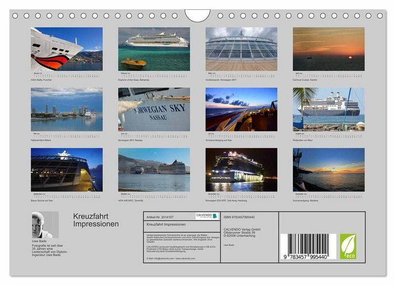 QUALITÄT - Hochwertiger Fotokalender mit 12 wunderschönen Motiven auf lichtbeständigem Bilderdruckpapier, robuste Spiralbindung mit Aufhängebügel.NACHHALTIG - deutliche Abfallreduzierung durch bedarfsgerechte Einzelstückfertigung, umweltfreundliches FSC-zertifiziertes Papier, Produktion in Deutschland, klimabewusste Logistik.PERFEKTES GESCHENK - Kalender für Freunde und Familie, für Kinder und Erwachsene, jung und alt, zu Weihnachten, Geburtstag oder zwischendurch.VIELFALT - Bildkalender in verschiedenen Formaten, z.B. DIN A5, DIN A4, DIN A3 sowie DIN A2. Ob Naturmotiv, Gemälde oder Fotos, ideal für ein persönliches Wohlfühlambiente.13 exklusive Momente rund um das Thema Kreuzfahrt von Autor(in): uwela