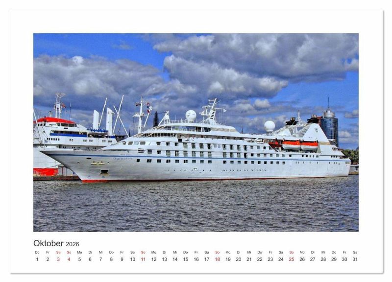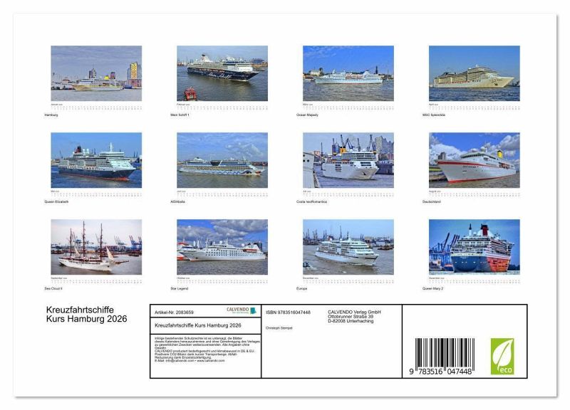 Der Hamburger Hafen ist beliebt bei Kreuzfahrtschiffen aus aller Welt. Exklusive Luxussegler, trendige Clubschiffe, gediegene Liner und gigantische Riesenschiffe geben sich in Hamburg ein Stelldichein. Dieser Kalender zeigt Schiffe aller Kategorien vor dem stimmungsvollen Hintergrund der Hansestadt.