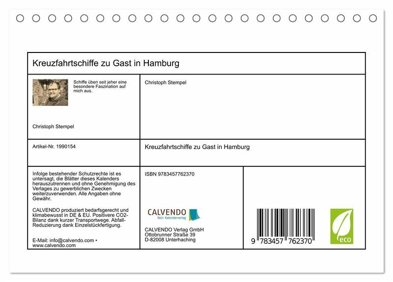 QUALITÄT - Hochwertiger Fotokalender mit 12 wunderschönen Motiven auf lichtbeständigem Bilderdruckpapier, robuste Spiralbindung.NACHHALTIG - deutliche Abfallreduzierung durch bedarfsgerechte Einzelstückfertigung, umweltfreundliches FSC-zertifiziertes Papier, Produktion in Deutschland, klimabewusste Logistik.PERFEKTES GESCHENK - Kalender für Freunde und Familie, für Kinder und Erwachsene, jung und alt, zu Weihnachten, Geburtstag oder zwischendurch.VIELFALT - Bildkalender in verschiedenen Formaten, z.B. DIN A5, DIN A4, DIN A3 sowie DIN A2. Ob Naturmotiv, Gemälde oder Fotos, ideal für ein persönliches Wohlfühlambiente.Kreuzfahrtschiffe aus aller Welt im Hamburger Hafen von Autor(in): Christoph Stempel