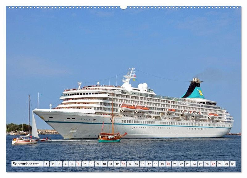 September: Die "Artania", Länge: 231 m, Breite: 29 m, 44 500 BRT, Flagge: Bermuda, Passagiere: 1200, Crew: 510, Indienststellung: 1984