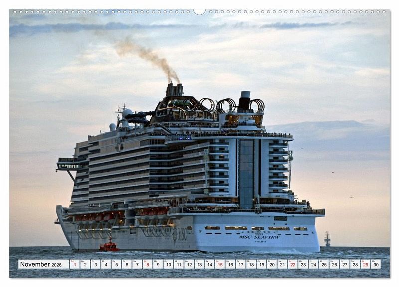 November: Die "MSC Seaview", Länge: 323 m, Breite: 41 m, 153 000 BRZ, Flagge: Malta, Passagiere: 5179, Crew: 1413, Indienststellung: 2018