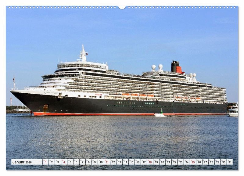 Januar: Die "Queen Elizabeth", Länge: 294 m, Breite: 32 m, 90 000 BRT, Flagge: Bermuda, Passagiere: 2081, Crew: 1005, Indienststellung 2016