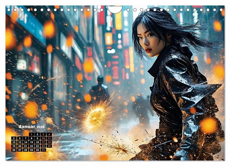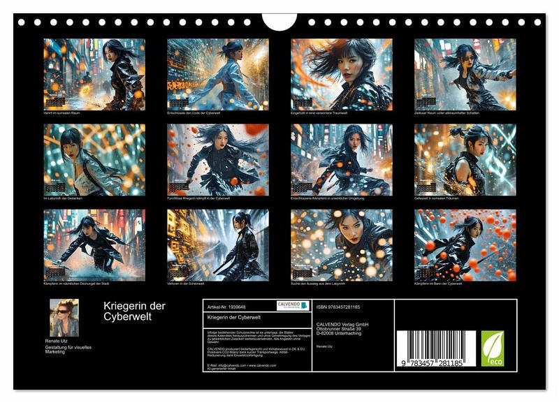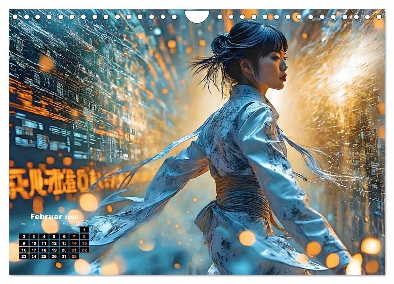 Erlebe, wie sich eine wunderschöne Japanerin zwischen Traum und Wirklichkeit durch die surrealen Bedrohungen des nächtlichen Großstadtdschungels kämpft. Tauche ein in eine unwirkliche Scheinwelt, in der sich hinter den lichtdurchfluteten Straßen der Großstadt unbekannte Gefahren verbergen. Meide die Schatten und bleibe im Licht. Entschlüssle den geheimen Code der Cyberwelt. Befreie dich von den Fesseln deiner Gedanken und kämpfe dich zurück in die Realität. Der mithilfe von KI kreierte Kalender von Renate Utz ist ein Muss für alle Freunde dieses Genres. Dieser qualitativ hochwertige Kalender gehört zur exklusiven CALVENDO Gold-Edition und wurde zusätzlich mit dem Jurypreis in der Klasse "Dynamik" ausgezeichnet.