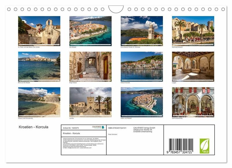 QUALITÄT - Hochwertiger Fotokalender mit 12 wunderschönen Motiven auf lichtbeständigem Bilderdruckpapier, robuste Spiralbindung mit Aufhängebügel.NACHHALTIG - deutliche Abfallreduzierung durch bedarfsgerechte Einzelstückfertigung, umweltfreundliches FSC-zertifiziertes Papier, Produktion in Deutschland, klimabewusste Logistik.PERFEKTES GESCHENK - Kalender für Freunde und Familie, für Kinder und Erwachsene, jung und alt, zu Weihnachten, Geburtstag oder zwischendurch.VIELFALT - Bildkalender in verschiedenen Formaten, z.B. DIN A5, DIN A4, DIN A3 sowie DIN A2. Ob Naturmotiv, Gemälde oder Fotos, ideal für ein persönliches Wohlfühlambiente.12 Monate mit der wunderbaren Inselhauptstadt Korcula in Kroatien von Autor(in): Peter Schickert