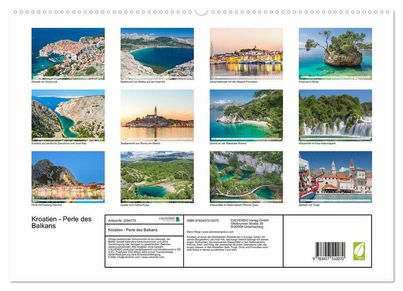 PREMIUM-LINIE - Brillanter Fotokalender mit 12 wunderschönen Motiven, Kunstdruck in Hochglanz in Museumsqualität.QUALITÄT - edle Materialien, stabile Rückwand mit 2 innovativen Einstecktaschen für eine optimale Präsentation an der Wand.NACHHALTIG - deutliche Abfallreduzierung durch bedarfsgerechte Einzelstückfertigung, umweltfreundliches FSC-zertifiziertes Papier, Produktion in Deutschland, klimabewusste Logistik.PERFEKTES GESCHENK - Kalender für Freunde und Familie, für Kinder und Erwachsene, jung und alt, zu Weihnachten, Geburtstag oder zwischendurch.Highlights einer Reise durch Kroatien von Autor(in): Mario Weigt