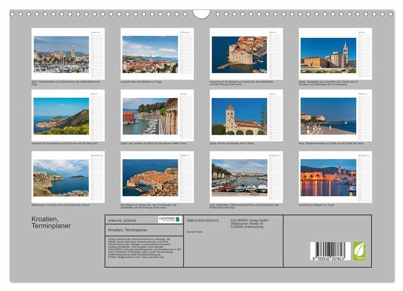 QUALITÄT - Hochwertiger Fotokalender mit 12 wunderschönen Motiven auf lichtbeständigem Bilderdruckpapier, robuste Spiralbindung mit Aufhängebügel.NACHHALTIG - deutliche Abfallreduzierung durch bedarfsgerechte Einzelstückfertigung, umweltfreundliches FSC-zertifiziertes Papier, Produktion in Deutschland, klimabewusste Logistik.PERFEKTES GESCHENK - Kalender für Freunde und Familie, für Kinder und Erwachsene, jung und alt, zu Weihnachten, Geburtstag oder zwischendurch.VIELFALT - Bildkalender in verschiedenen Formaten, z.B. DIN A5, DIN A4, DIN A3 sowie DIN A2. Ob Naturmotiv, Gemälde oder Fotos, ideal für ein persönliches Wohlfühlambiente.Der Fotograf Gunter Kirsch zeigt einige der schönsten Orte Kroatiens. von Autor(in): Gunter Kirsch