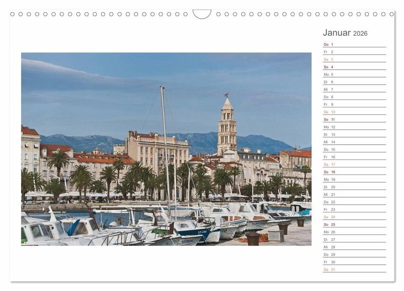 Januar: Split, Fischereihafen und Glockenturm der Kathedrale Sveti Duje.