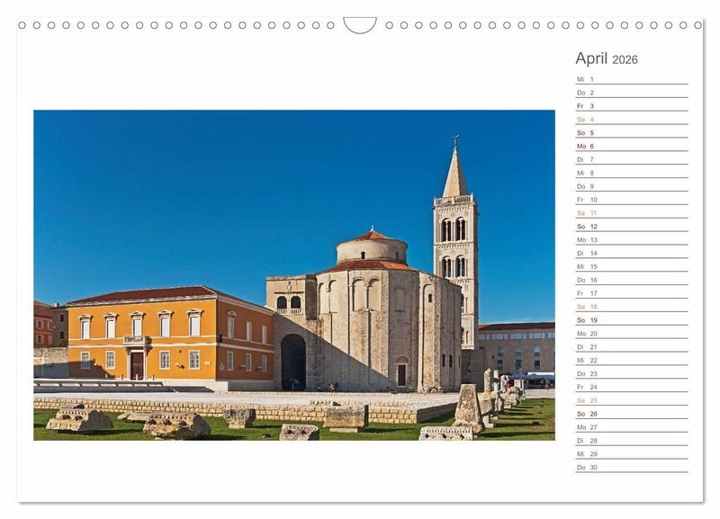 April: Zadar, Marktplatz aus römischer Zeit, Kirche des Hl. Donatus und Kathedrale der hl. Anastasia.