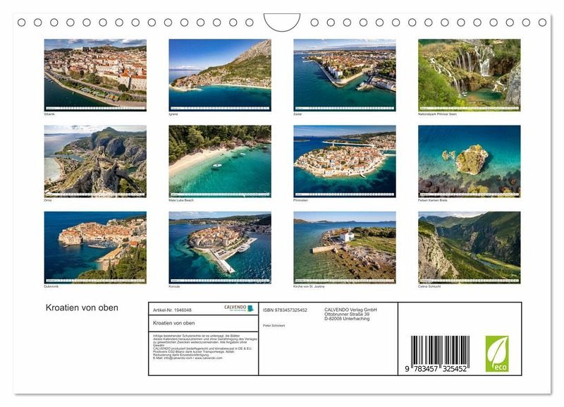 QUALITÄT - Hochwertiger Fotokalender mit 12 wunderschönen Motiven auf lichtbeständigem Bilderdruckpapier, robuste Spiralbindung mit Aufhängebügel.NACHHALTIG - deutliche Abfallreduzierung durch bedarfsgerechte Einzelstückfertigung, umweltfreundliches FSC-zertifiziertes Papier, Produktion in Deutschland, klimabewusste Logistik.PERFEKTES GESCHENK - Kalender für Freunde und Familie, für Kinder und Erwachsene, jung und alt, zu Weihnachten, Geburtstag oder zwischendurch.VIELFALT - Bildkalender in verschiedenen Formaten, z.B. DIN A5, DIN A4, DIN A3 sowie DIN A2. Ob Naturmotiv, Gemälde oder Fotos, ideal für ein persönliches Wohlfühlambiente.Kroatiens Höhepunkte vom Plitvice Nationalpark bis Dubrovnik von oben gesehen. von Autor(in): Peter Schickert