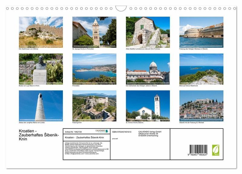 QUALITÄT - Hochwertiger Fotokalender mit 12 wunderschönen Motiven auf lichtbeständigem Bilderdruckpapier, robuste Spiralbindung mit Aufhängebügel.NACHHALTIG - deutliche Abfallreduzierung durch bedarfsgerechte Einzelstückfertigung, umweltfreundliches FSC-zertifiziertes Papier, Produktion in Deutschland, klimabewusste Logistik.PERFEKTES GESCHENK - Kalender für Freunde und Familie, für Kinder und Erwachsene, jung und alt, zu Weihnachten, Geburtstag oder zwischendurch.VIELFALT - Bildkalender in verschiedenen Formaten, z.B. DIN A5, DIN A4, DIN A3 sowie DIN A2. Ob Naturmotiv, Gemälde oder Fotos, ideal für ein persönliches Wohlfühlambiente.Unser Sibenik-Knin Kalender fängt die atemberaubende Schönheit dieser kroatischen Region in 12 eindrucksvollen Bildern ein und wird Ihnen jeden Tag des Jahres ein Stück dieses magischen Ortes näherbringen. von Autor(in): Fabian Junge