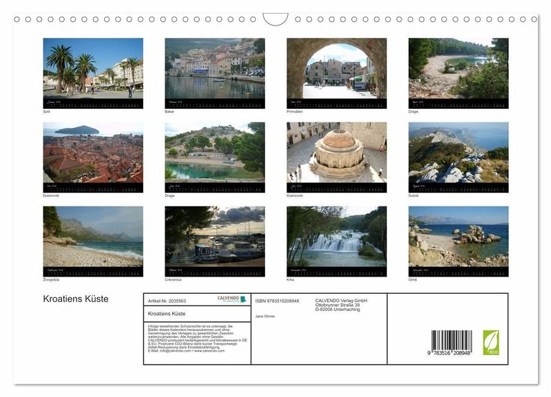 QUALITÄT - Hochwertiger Fotokalender mit 12 wunderschönen Motiven auf lichtbeständigem Bilderdruckpapier, robuste Spiralbindung mit Aufhängebügel.NACHHALTIG - deutliche Abfallreduzierung durch bedarfsgerechte Einzelstückfertigung, umweltfreundliches FSC-zertifiziertes Papier, Produktion in Deutschland, klimabewusste Logistik.PERFEKTES GESCHENK - Kalender für Freunde und Familie, für Kinder und Erwachsene, jung und alt, zu Weihnachten, Geburtstag oder zwischendurch.VIELFALT - Bildkalender in verschiedenen Formaten, z.B. DIN A5, DIN A4, DIN A3 sowie DIN A2. Ob Naturmotiv, Gemälde oder Fotos, ideal für ein persönliches Wohlfühlambiente.entlang der Küstenlinie Kroatiens von Autor(in): Jana Ohmer