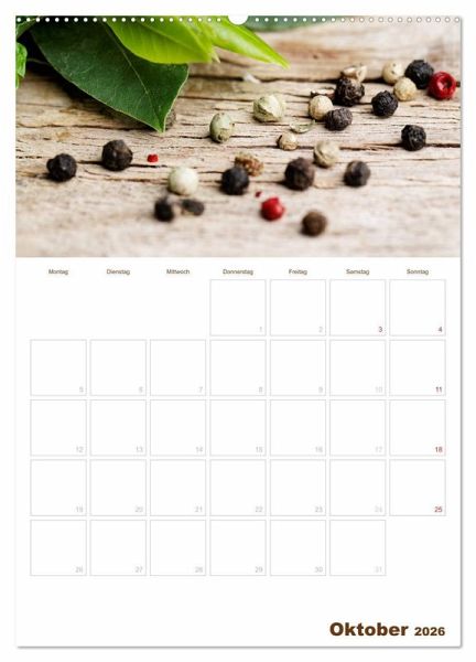 Ein Kalender mit Küchemotiven - liebevoll und appetitlich arrangiert - Gebäck, Gewürze, Obst....