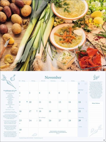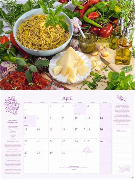 - Macht Appetit: Der Küchenkalender bietet Monat für Monat Food-Fotos, die Lust auf Kochen und Probieren machen- Alle Termine schon beim Morgenkaffee im Blick: Dieser Wandplaner macht auch über der Kaffeemaschine eine gute Figur- Ein Blickfang für Küche und Essecke, der die Terminplanung zum Kinderspiel macht: Wandkalender im Format 45 x 30 cm mit viel Platz für Notizen - Kalender für Hobby-Köche und Foodies: Rezepte, Warenkunde, Praxistipps und großer Saisonkalender- Terminplanung leicht gemacht: mit den Broschürenkalendern von Heye aus dem Athesia Kalenderverlag