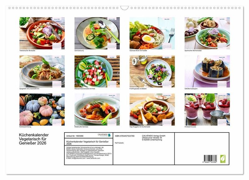 Ein Küchenkalender der vegetarischen Trendküche. 13 vegane und vegetarische Foodfotos der extraklasse vom Kochbuchautor und Küchenchef persönlich fotografiert. Ein Augenschmaus für jede Hobbyköchin bzw. Hobbykoch. Verschönert jede Küche im Handumdrehen.