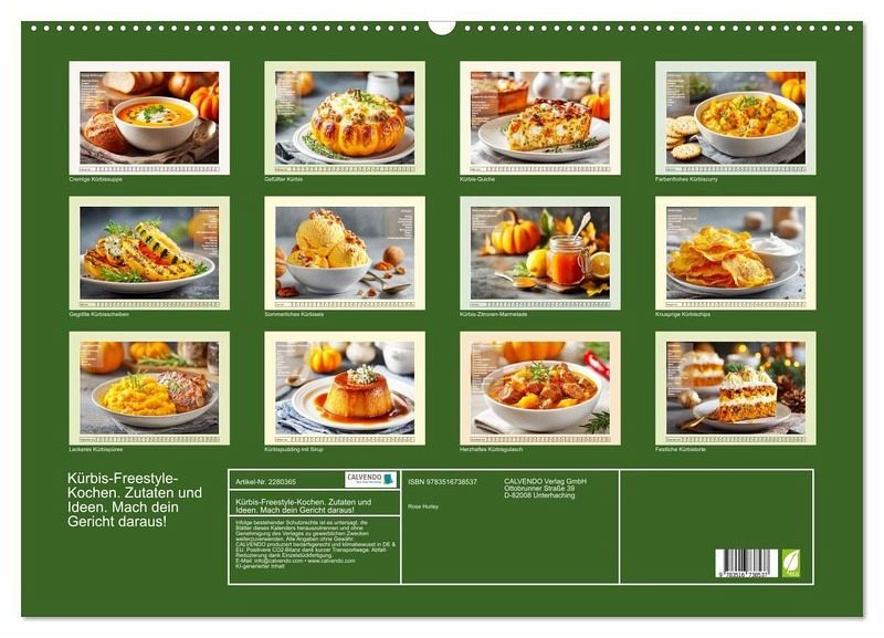 Dieser Kalender setzt ganz auf Kreativität: Statt Rezepten erhältst du jeden Monat eine stimmungsvolle Zutatenidee rund um den Kürbis. Alles ist möglich - du entscheidest selbst, was du daraus machst. So entsteht ein Jahr voller spontaner Genussmomente ganz nach deinem Geschmack. Alle Bilder wurden mit der Hilfe von KI erstellt und sind perfekt für alle, die Kürbis lieben, gerne experimentieren und intuitiv kochen.