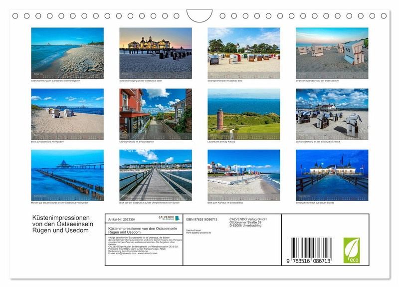 QUALITÄT - Hochwertiger Fotokalender mit 12 wunderschönen Motiven auf lichtbeständigem Bilderdruckpapier, robuste Spiralbindung mit Aufhängebügel.NACHHALTIG - deutliche Abfallreduzierung durch bedarfsgerechte Einzelstückfertigung, umweltfreundliches FSC-zertifiziertes Papier, Produktion in Deutschland, klimabewusste Logistik.PERFEKTES GESCHENK - Kalender für Freunde und Familie, für Kinder und Erwachsene, jung und alt, zu Weihnachten, Geburtstag oder zwischendurch.VIELFALT - Bildkalender in verschiedenen Formaten, z.B. DIN A5, DIN A4, DIN A3 sowie DIN A2. Ob Naturmotiv, Gemälde oder Fotos, ideal für ein persönliches Wohlfühlambiente.Malerische Impressionen von Stränden, Seebädern und Seebrücken auf den Ostseeinseln Rügen und Usedom von Autor(in): Sascha Ferrari