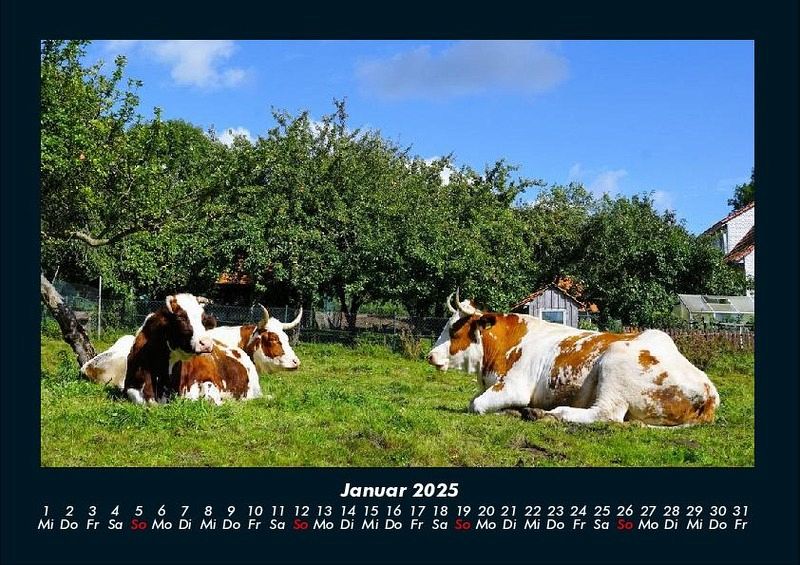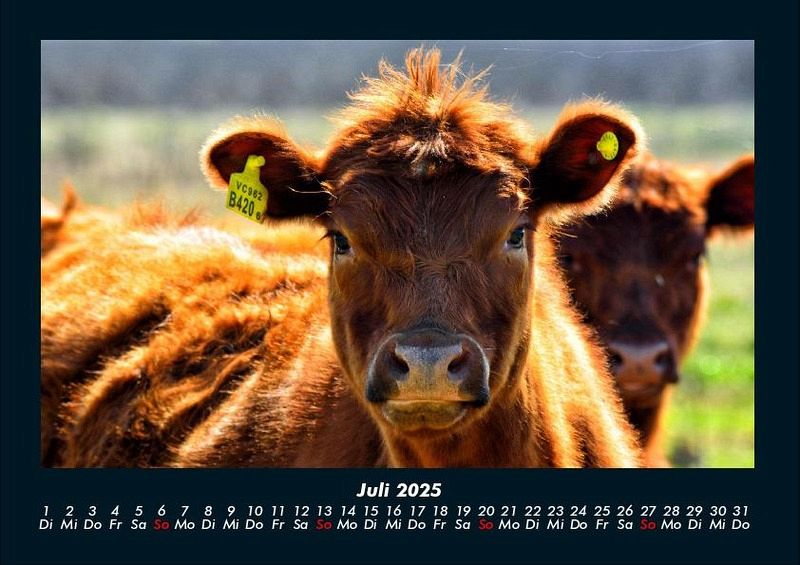 Kuhkalender 2025 Motivkalender DIN A4 Vero-Kalender erhalten Sie mit Motiven aus den verschiedensten Themenbereichen wie Natur, Blumen und Landschaft, Tierwelt, Architektur, Reise und Urlaub, Technik, Automobil und Eisenbahn, Emotionen, Sport und Musik. Gedruckt werden die Monats-Kalender aus dem Vero Verlag auf hochwertigem Kalenderbogen in Premium-Qualität und verschiedenen Größen. Die Vielfältigkeit der Motive unserer Foto-Kalender ist dank der Zusammenarbeit mit kreativen Fotografen möglich.