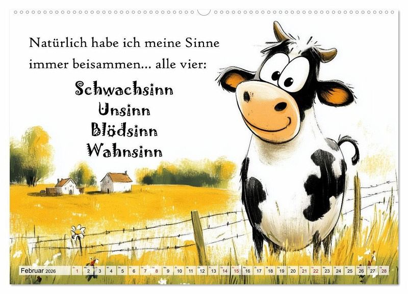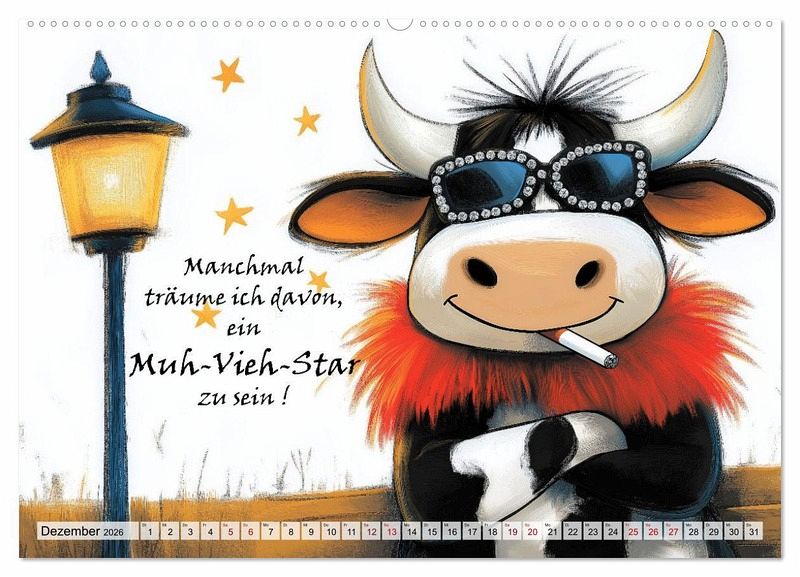 Hier kommt der ultimative Spaß für das ganze Jahr! 12 Monate voller kuhler Sprüche und lustiger KI-Bilder rund ums Rindvieh. Egal, ob du ein Kuh-Fan bist oder einfach nur einen Lacher brauchst, dieser Kalender bringt dich garantiert zum Schmunzeln. Perfekt zum Verschenken oder Selbstbehalten. Dieser qualitativ hochwertige Kalender gehört zur exklusiven CALVENDO Gold-Edition.