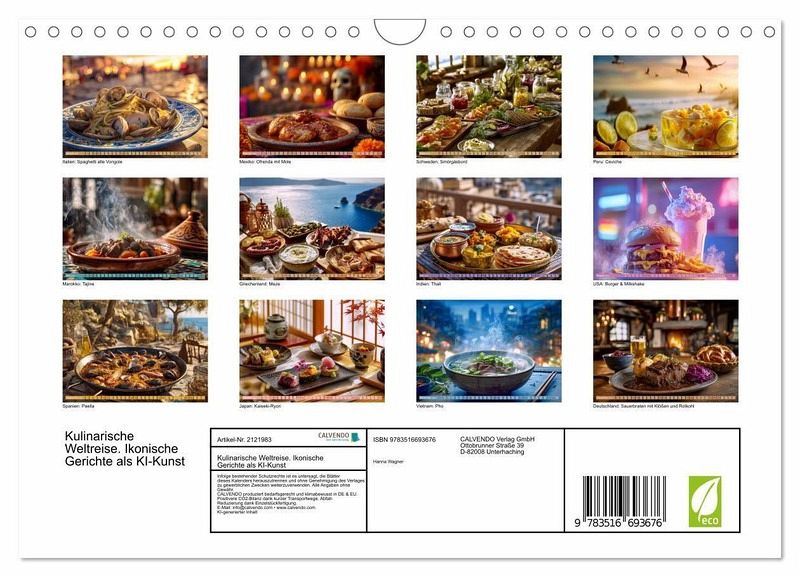 Entdecken Sie die kulinarische Welt in einer völlig neuen Dimension: Dieser Kalender präsentiert ikonische Gerichte aus verschiedenen Ländern als atemberaubende KI-Kunstwerke. Von italienischer Pasta über marokkanische Tajine bis hin zu japanischer Kaiseki-Küche - jedes Bild ist ein Fest für die Sinne und vereint Tradition mit moderner Technologie. Die KI-generierten Motive bestachen durch ihre lebendigen Farben, realistischen Details und die einzigartige Ästhetik, die Lust auf Reisen und Genuss macht. Perfekt für Feinschmecker, Kunstliebhaber und alle, die die Welt durch kulinarische Highlights entdecken möchten. Ein Muss für jeden, der die Schönheit der globalen Küche schätzt!