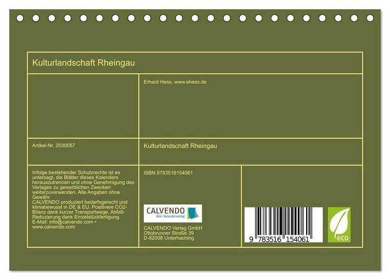 QUALITÄT - Hochwertiger Fotokalender mit 12 wunderschönen Motiven auf lichtbeständigem Bilderdruckpapier, robuste Spiralbindung.NACHHALTIG - deutliche Abfallreduzierung durch bedarfsgerechte Einzelstückfertigung, umweltfreundliches FSC-zertifiziertes Papier, Produktion in Deutschland, klimabewusste Logistik.PERFEKTES GESCHENK - Kalender für Freunde und Familie, für Kinder und Erwachsene, jung und alt, zu Weihnachten, Geburtstag oder zwischendurch.VIELFALT - Bildkalender in verschiedenen Formaten, z.B. DIN A5, DIN A4, DIN A3 sowie DIN A2. Ob Naturmotiv, Gemälde oder Fotos, ideal für ein persönliches Wohlfühlambiente.Kulturlandschaft Rheingau: geprägt durch eine lange Tradition des Weinbaus und des Handels mit einer Fülle von architektonischen Highlights von Autor(in): papabaer125