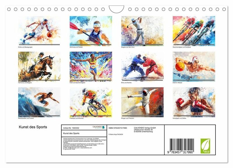 QUALITÄT - Hochwertiger Fotokalender mit 12 wunderschönen Motiven auf lichtbeständigem Bilderdruckpapier, robuste Spiralbindung mit Aufhängebügel.NACHHALTIG - deutliche Abfallreduzierung durch bedarfsgerechte Einzelstückfertigung, umweltfreundliches FSC-zertifiziertes Papier, Produktion in Deutschland, klimabewusste Logistik.PERFEKTES GESCHENK - Kalender für Freunde und Familie, für Kinder und Erwachsene, jung und alt, zu Weihnachten, Geburtstag oder zwischendurch.VIELFALT - Bildkalender in verschiedenen Formaten, z.B. DIN A5, DIN A4, DIN A3 sowie DIN A2. Ob Naturmotiv, Gemälde oder Fotos, ideal für ein persönliches Wohlfühlambiente.Erleben Sie die Schönheit und Energie olympischer Sportarten durch lebendige und fesselnde Gemälde. von Autor(in): Marie-Ange Pagnon