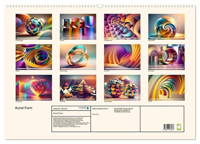 QUALITÄT - Hochwertiger Fotokalender mit 12 wunderschönen Motiven auf lichtbeständigem Bilderdruckpapier, robuste Spiralbindung mit Aufhängebügel.NACHHALTIG - deutliche Abfallreduzierung durch bedarfsgerechte Einzelstückfertigung, umweltfreundliches FSC-zertifiziertes Papier, Produktion in Deutschland, klimabewusste Logistik.PERFEKTES GESCHENK - Kalender für Freunde und Familie, für Kinder und Erwachsene, jung und alt, zu Weihnachten, Geburtstag oder zwischendurch.VIELFALT - Bildkalender in verschiedenen Formaten, z.B. DIN A5, DIN A4, DIN A3 sowie DIN A2. Ob Naturmotiv, Gemälde oder Fotos, ideal für ein persönliches Wohlfühlambiente.Kunstvolle Formen und Farben von Autor(in): Daniel Rohr