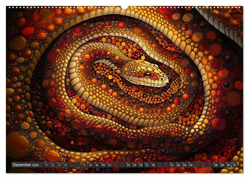 Jedes Kalenderblatt präsentiert atemberaubende, von KI generierte Kunstwerke, die traditionelle Techniken mit modernen Stilen und Materialien kombinieren. Lassen Sie sich von den lebendigen Farben und der tiefen Symbolik verzaubern und tauchen Sie ein in die spirituelle Welt der Aborigines-Kultur.