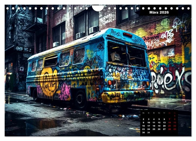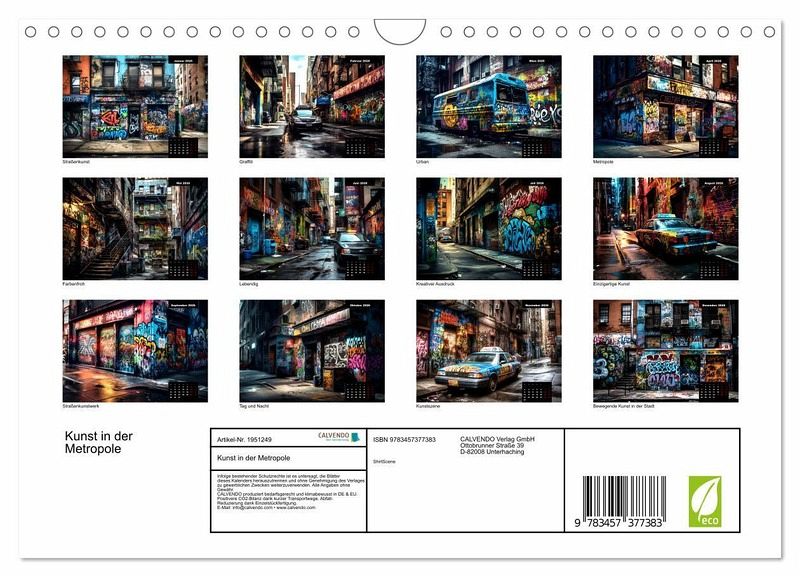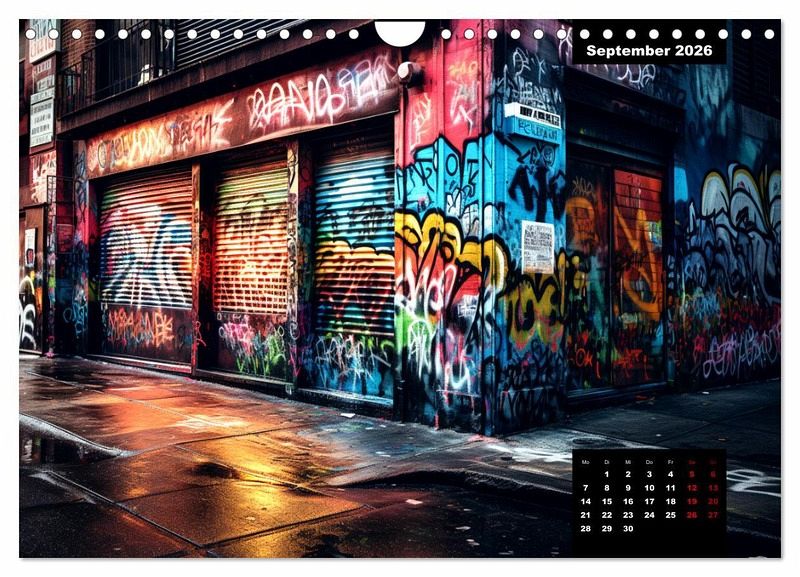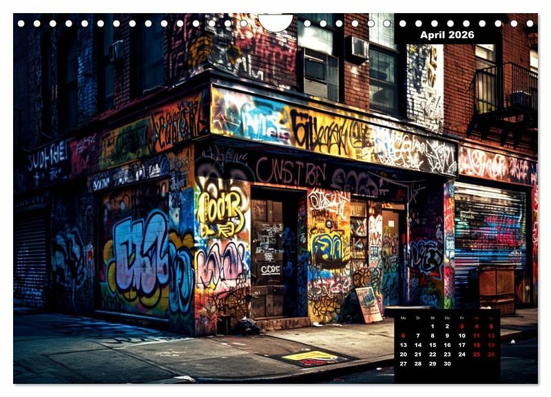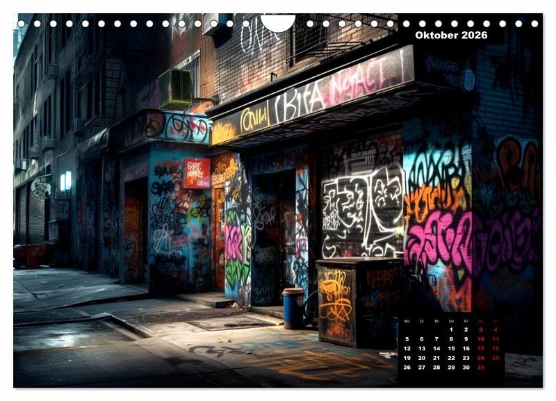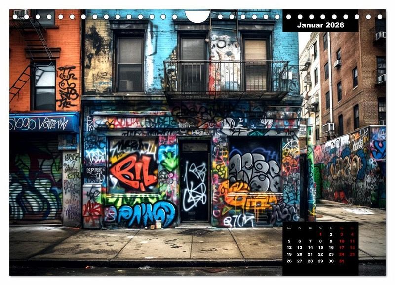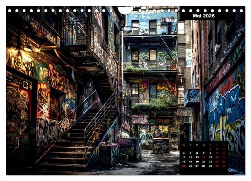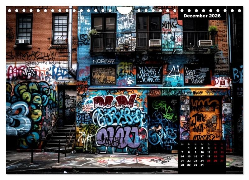 Die zwölf Bilder in diesem Wandkalender zeigen Graffiti-Kunstwerke auf eine inspirierende und dynamische Art und Weise. Jedes Bild erzählt eine Geschichte und zeigt die Vielfalt der Straßenkunstszene. Bestellen Sie noch heute Ihren eigenen Wandkalender mit Graffiti in den Seitenstraßen von Metropolen der Welt und tauchen Sie ein in die faszinierende Welt der urbanen Kunst!