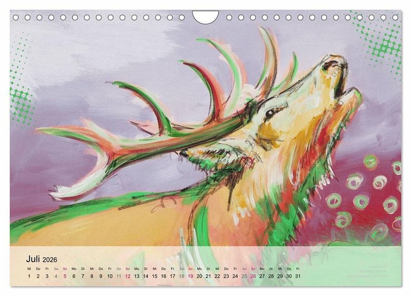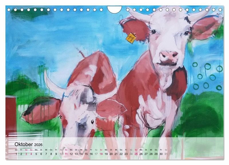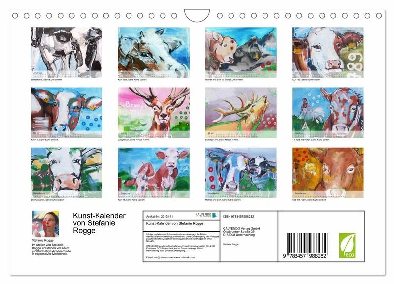 Das Jahr wird bunt. Der Kunstkalender von Stefanie Rogge mit neuen frischen und frechen Motiven aus den Serien "Kühe codiert" und "Hirsch in Pink". Alle Motive im Kalender sind eine Reproduktion der Original Acrylgemälde und im Atelier in der Nähe von Hannover entstanden.