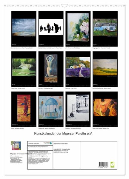 QUALITÄT - Hochwertiger Fotokalender mit 12 wunderschönen Motiven auf lichtbeständigem Bilderdruckpapier, robuste Spiralbindung mit Aufhängebügel.NACHHALTIG - deutliche Abfallreduzierung durch bedarfsgerechte Einzelstückfertigung, umweltfreundliches FSC-zertifiziertes Papier, Produktion in Deutschland, klimabewusste Logistik.PERFEKTES GESCHENK - Kalender für Freunde und Familie, für Kinder und Erwachsene, jung und alt, zu Weihnachten, Geburtstag oder zwischendurch.VIELFALT - Bildkalender in verschiedenen Formaten, z.B. DIN A5, DIN A4, DIN A3 sowie DIN A2. Ob Naturmotiv, Gemälde oder Fotos, ideal für ein persönliches Wohlfühlambiente.Ein Kalender für Kunstliebhaber der gegenständlichen und figürlichen Darstellung von Autor(in): Kunstverein Moerser Palette e.V.