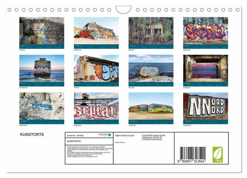 QUALITÄT - Hochwertiger Fotokalender mit 12 wunderschönen Motiven auf lichtbeständigem Bilderdruckpapier, robuste Spiralbindung mit Aufhängebügel.NACHHALTIG - deutliche Abfallreduzierung durch bedarfsgerechte Einzelstückfertigung, umweltfreundliches FSC-zertifiziertes Papier, Produktion in Deutschland, klimabewusste Logistik.PERFEKTES GESCHENK - Kalender für Freunde und Familie, für Kinder und Erwachsene, jung und alt, zu Weihnachten, Geburtstag oder zwischendurch.VIELFALT - Bildkalender in verschiedenen Formaten, z.B. DIN A5, DIN A4, DIN A3 sowie DIN A2. Ob Naturmotiv, Gemälde oder Fotos, ideal für ein persönliches Wohlfühlambiente.Ungewöhnliche Orte, die zu Kunstorten umfunktioniert worden sind von Autor(in): Kathrin Sachse