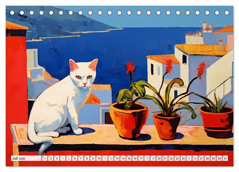 Mai: Katze vor mediterranem Meer