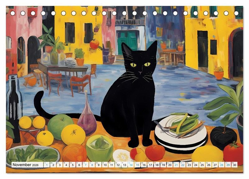 November: Katze sitzt auf Esstisch