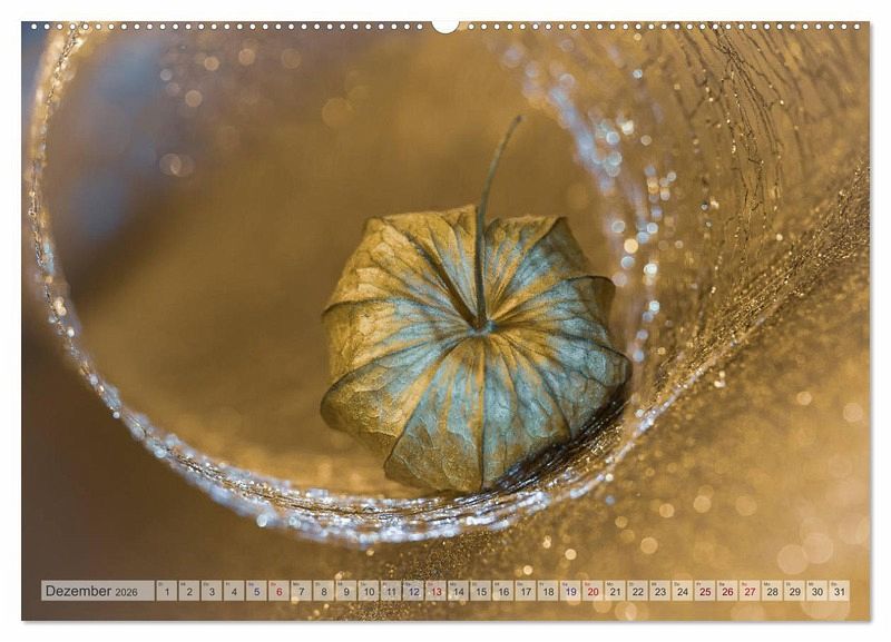 Die getrockneten Fruchthüllen der Physalis, auch Lampionblume genannt, gehören zu den Lieblingsmotiven der Fotografin. In diesem Kalender zeigt sie die Vielseitigkeit dieser außergewöhnlichen und dekorativen Frucht in stimmungsvollen Bildern. Die Schale der Physalis ist ein richtiger Blickfang.