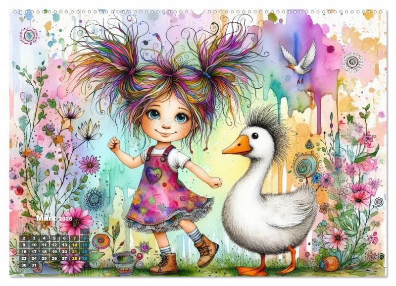 Tauchen Sie ein in die fröhliche Welt von "Kunterbunte Freundschaften - Fröhliche Mädchen und ihre tierischen Freunde"! Dieser bezaubernde KI generierte Kalender bringt die unbeschwerte Freude der Kindheit direkt in Ihr Zuhause. Mit liebevoll gestalteten Aquarellbildern zeigt er lebhafte Mädchen, die mit ihren tierischen Freunden ausgelassen im Regen tanzen und das Leben in vollen Zügen genießen. Mädchen, die eher Wildfang als Prinzessin sind. Und die nicht nur in der Sonne, sondern auch gerne mal im Regen tanzen, Lebensfreude ausstrahlen und dazu einladen, die Welt mit Neugier und Begeisterung zu erkunden.