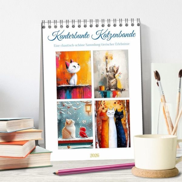 Kennst du das? Kaum drehst du dich um, hat die Katze dein Essen geklaut, die Vorhänge erklommen oder sich in den kleinsten Karton der Welt gezwängt? Dann bist du hier genau richtig! In unserem kalender Kunterbunte Katzenbande, geht es drunter und drüber. Freche Fellnasen, verrückte Abenteuer und jede Menge Chaos sind garantiert. Von flauschigen Dieben über abenteuerlustige Streuner bis hin zu cleveren Samtpfoten, die ihre Menschen fest im Griff haben. Hier bleibt kein Schnurrhaar trocken! Alle hier gezeigten Bilder wurden mit Sorgfalt, Liebe und mit Hilfe einer KI generiert. Abschließend werden sie mit Bildbearbeitungsprogrammen überarbeitet und in den Kalender eingefügt.