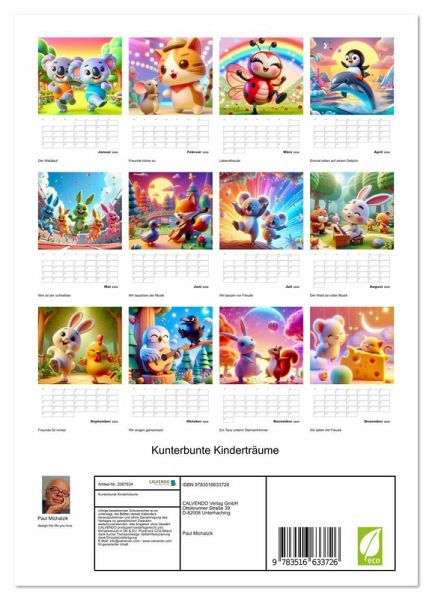 QUALITÄT - Hochwertiger Fotokalender mit 12 wunderschönen Motiven auf lichtbeständigem Bilderdruckpapier, robuste Spiralbindung mit Aufhängebügel.NACHHALTIG - deutliche Abfallreduzierung durch bedarfsgerechte Einzelstückfertigung, umweltfreundliches FSC-zertifiziertes Papier, Produktion in Deutschland, klimabewusste Logistik.PERFEKTES GESCHENK - Kalender für Freunde und Familie, für Kinder und Erwachsene, jung und alt, zu Weihnachten, Geburtstag oder zwischendurch.VIELFALT - Bildkalender in verschiedenen Formaten, z.B. DIN A5, DIN A4,DIN A3 sowie DIN A2. Ob Naturmotiv, Gemälde oder Fotos, ideal für ein persönliches Wohlfühlambiente.Wo Kinderlachen bunt wird - 12 Monate zum Staunen von Autor(in): Paul Michalzik