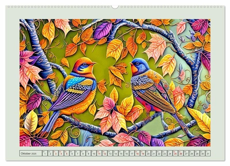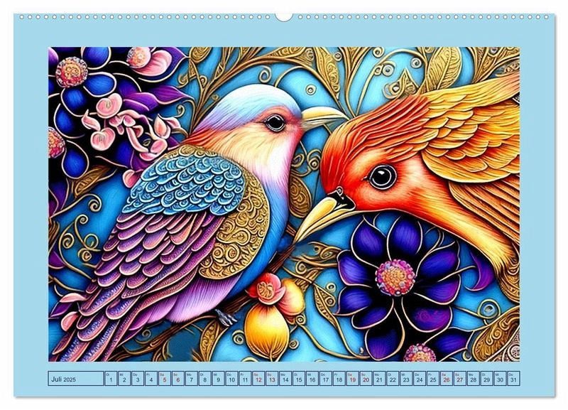 Erleben Sie die faszinierende Welt der Fantasievögel. Farbenfrohe Vogelillustrationen begeistern und zeigen Kunst auf eine neue Art und Weise. Alle Bilder sind digitale Gemälde, die nach handgemalten Vorlagen mit KI modifiziert und mit zahlreichen Bildbearbeitungsprogrammen zu einem harmonischen Ganzen komponiert wurden. Ideal für Vogelfans und Kunstliebhaber als Geschenk. Jetzt bestellen und jeden Monat eine neue Überraschung genießen.