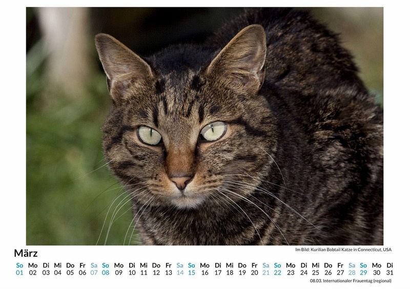 Entdecken Sie die faszinierende Welt der Kurilen Bobtail - einer einzigartigen Katzenrasse, die durch ihre markante Stummelschwanz und ihr verspieltes Wesen besticht. Unser hochwertiger Wandkalender präsentiert 12 liebevoll ausgewählte Motive dieser charmanten Katzen auf lichtbeständigem Bilderdruckpapier. Monat für Monat begleiten Sie diese außergewöhnlichen Tiere durch das Jahr und bringen Freude in Ihr Zuhause. Gedruckt in Deutschland auf FSC-zertifiziertem Papier, vereint dieser Kalender Nachhaltigkeit und Ästhetik. Perfekt für Katzenliebhaber und alle, die das Besondere schätzen. Sichern Sie sich jetzt Ihren Kurilen Bobtail Kalender und lassen Sie sich verzaubern! Hochwertig Erleben Sie ein Jahr voller Eleganz mit unserem Premium-Fotokalender. Jedes der 12 Motive ist auf hochwertigem, lichtbeständigem Bilderdruckpapier gedruckt, um die Lebendigkeit jedes Bildes zu bewahren. Die robuste Spiralbindung gewährleistet Langlebigkeit und einfache Handhabung. Nachhaltig Unser Engagement für die Umwelt spiegelt sich in jedem Exemplar wider. Durch die Produktion auf Abruf reduzieren wir signifikant unseren Abfall. Wir verwenden ausschließlich umweltfreundliches, FSC-zertifiziertes Papier. Stolz gefertigt in Deutschland, achten wir bei unserer Logistik auf Klimaschutz, um unseren ökologischen Fußabdruck zu minimieren. Das ideale Geschenk Dieser Kalender ist das perfekte Präsent für jeden Anlass - ob Weihnachten, Geburtstage oder einfach als liebevolle Aufmerksamkeit zwischendurch. Geeignet für Freunde, Familie, Kinder und Erwachsene gleichermaßen, bereichert er jedes Zuhause mit seiner Vielfalt und Schönheit, unabhängig vom Alter der Beschenkten.