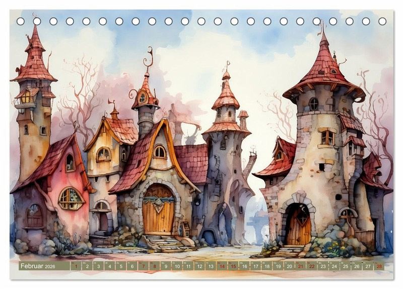 Haben Sie genug von langweiligen Kalendern, die immer nur die gleichen Bauwerke zeigen? Dann kommen Sie mit auf eine Reise ins Reich der Fantasie! Dieser Kalender zeigt Ihnen, mit Hilfe einer KI, jeden Monat ein anderes verrücktes, kreatives Haus, das mit leuchtenden Farben und mit viel Liebe zum Detail in Aquarell erdacht wurde. Freuen Sie sich auf ein Jahr voller Magie und origineller Wohnideen!