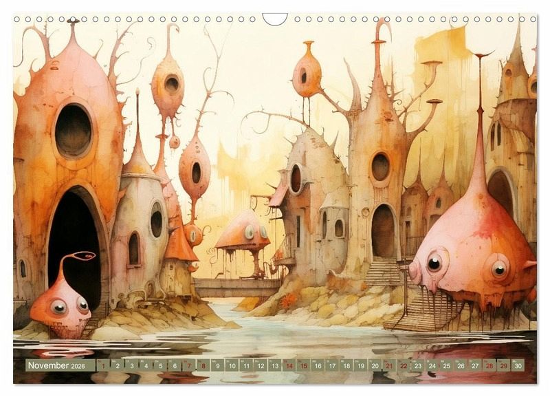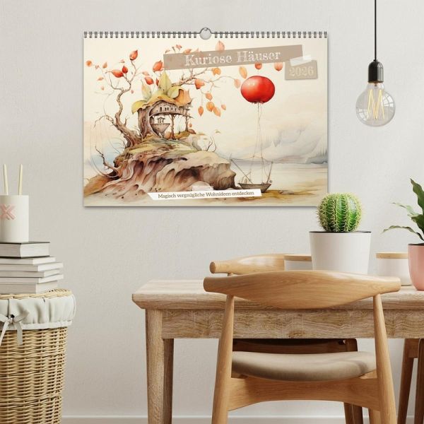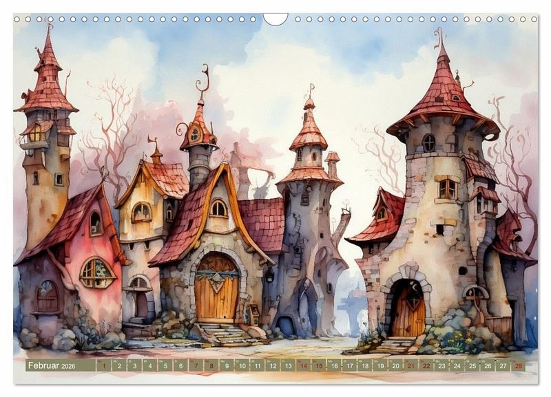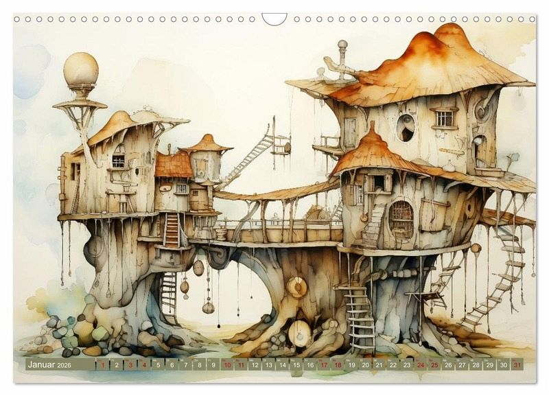Haben Sie genug von langweiligen Kalendern, die immer nur die gleichen Bauwerke zeigen? Dann kommen Sie mit auf eine Reise ins Reich der Fantasie! Dieser Kalender zeigt Ihnen, mit Hilfe einer KI, jeden Monat ein anderes verrücktes, kreatives Haus, das mit leuchtenden Farben und mit viel Liebe zum Detail in Aquarell erdacht wurde. Freuen Sie sich auf ein Jahr voller Magie und origineller Wohnideen!