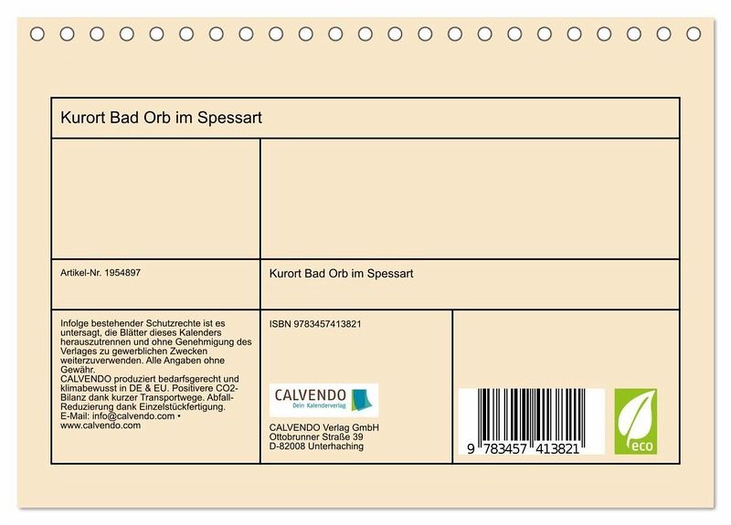 QUALITÄT - Hochwertiger Fotokalender mit 12 wunderschönen Motiven auf lichtbeständigem Bilderdruckpapier, robuste Spiralbindung.NACHHALTIG - deutliche Abfallreduzierung durch bedarfsgerechte Einzelstückfertigung, umweltfreundliches FSC-zertifiziertes Papier, Produktion in Deutschland, klimabewusste Logistik.PERFEKTES GESCHENK - Kalender für Freunde und Familie, für Kinder und Erwachsene, jung und alt, zu Weihnachten, Geburtstag oder zwischendurch.VIELFALT - Bildkalender in verschiedenen Formaten, z.B. DIN A5, DIN A4, DIN A3 sowie DIN A2. Ob Naturmotiv, Gemälde oder Fotos, ideal für ein persönliches Wohlfühlambiente.Kleiner schöner Ort in Hessen ist Bad Orb. von Autor(in): Ramona Benahmed
