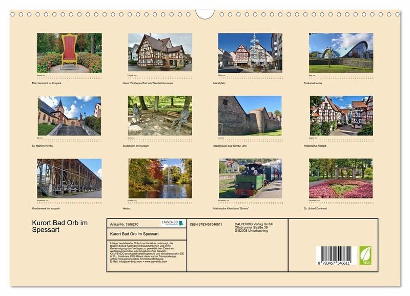QUALITÄT - Hochwertiger Fotokalender mit 12 wunderschönen Motiven auf lichtbeständigem Bilderdruckpapier, robuste Spiralbindung mit Aufhängebügel.NACHHALTIG - deutliche Abfallreduzierung durch bedarfsgerechte Einzelstückfertigung, umweltfreundliches FSC-zertifiziertes Papier, Produktion in Deutschland, klimabewusste Logistik.PERFEKTES GESCHENK - Kalender für Freunde und Familie, für Kinder und Erwachsene, jung und alt, zu Weihnachten, Geburtstag oder zwischendurch.VIELFALT - Bildkalender in verschiedenen Formaten, z.B. DIN A5, DIN A4, DIN A3 sowie DIN A2. Ob Naturmotiv, Gemälde oder Fotos, ideal für ein persönliches Wohlfühlambiente.Kleiner schöner Ort in Hessen ist Bad Orb. von Autor(in): Ramona Benahmed