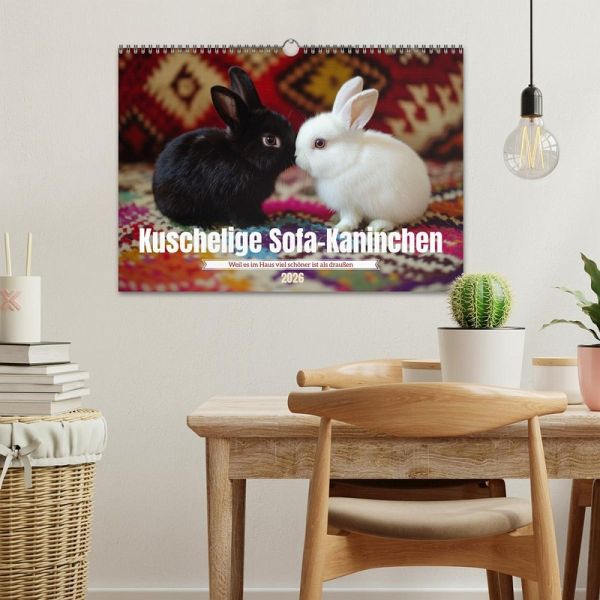 "Kuschelige Sofa-Kaninchen" ist der perfekte Kalender für alle, die ihre Liebe zu Hauskaninchen mit stilvollen und herzerwärmenden Bildern feiern möchten. Mit einer einzigartigen Mischung aus fotorealistischen KI-generierten Motiven zeigt er die flauschigen Langohren in ihren gemütlichsten Momenten - auf Sofas, in Kissen gekuschelt oder entspannt im Wohnzimmer. Jeder Monat bringt ein neues, liebevoll gestaltetes Bild, das die sanfte und verspielte Natur der Kaninchen einfängt. Ein Muss für Kaninchenfreunde und alle, die sich an flauschiger Gemütlichkeit erfreuen.