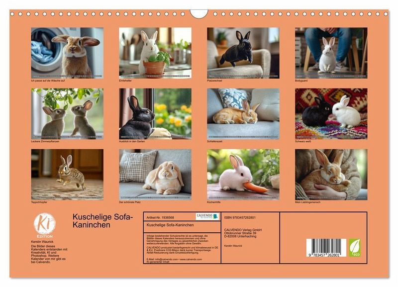 QUALITÄT - Hochwertiger Fotokalender mit 12 wunderschönen Motiven auf lichtbeständigem Bilderdruckpapier, robuste Spiralbindung mit Aufhängebügel.NACHHALTIG - deutliche Abfallreduzierung durch bedarfsgerechte Einzelstückfertigung, umweltfreundliches FSC-zertifiziertes Papier, Produktion in Deutschland, klimabewusste Logistik.PERFEKTES GESCHENK - Kalender für Freunde und Familie, für Kinder und Erwachsene, jung und alt, zu Weihnachten, Geburtstag oder zwischendurch.VIELFALT - Bildkalender in verschiedenen Formaten, z.B. DIN A5, DIN A4, DIN A3 sowie DIN A2. Ob Naturmotiv, Gemälde oder Fotos, ideal für ein persönliches Wohlfühlambiente.Ein gemütlicher Kalender mit Hauskaninchen, die kuscheln, entspannen und das Sofa erobern von Autor(in): Kerstin Waurick