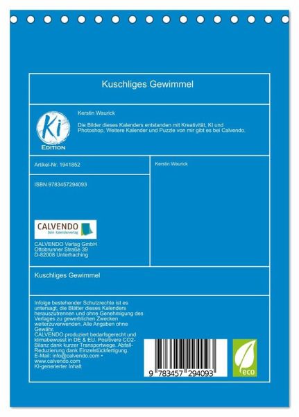 QUALITÄT - Hochwertiger Fotokalender mit 12 wunderschönen Motiven auf lichtbeständigem Bilderdruckpapier, robuste Spiralbindung.NACHHALTIG - deutliche Abfallreduzierung durch bedarfsgerechte Einzelstückfertigung, umweltfreundliches FSC-zertifiziertes Papier, Produktion in Deutschland, klimabewusste Logistik.PERFEKTES GESCHENK - Kalender für Freunde und Familie, für Kinder und Erwachsene, jung und alt, zu Weihnachten, Geburtstag oder zwischendurch.VIELFALT - Bildkalender in verschiedenen Formaten, z.B. DIN A5, DIN A4, DIN A3 sowie DIN A2. Ob Naturmotiv, Gemälde oder Fotos, ideal für ein persönliches Wohlfühlambiente.Ein Kalender voller Wärme und Niedlichkeit, der zum Reinkuscheln einlädt von Autor(in): Kerstin Waurick